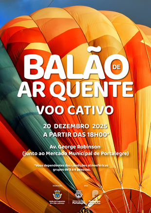 No próximo dia 20/12/2025, a partir das 18 horas*, venha experimentar um voo estático/cativo de Balão de Ar Quente.